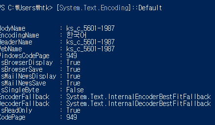 윈도우 시스템의 인코딩 방식은 아래와 같이 확인할 수 있다.